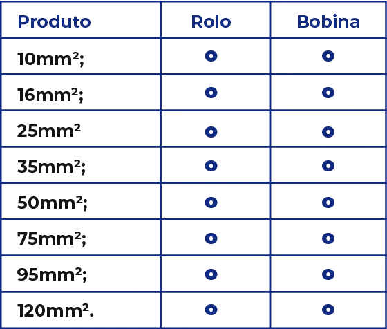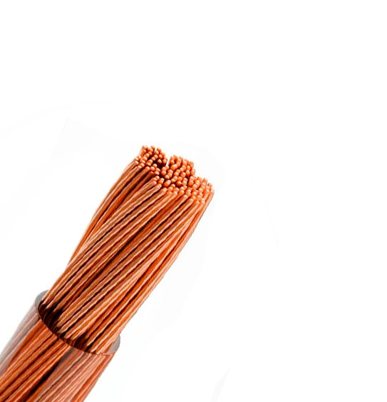 Fios de cobre nu recozido e encordoamento extra flexível.