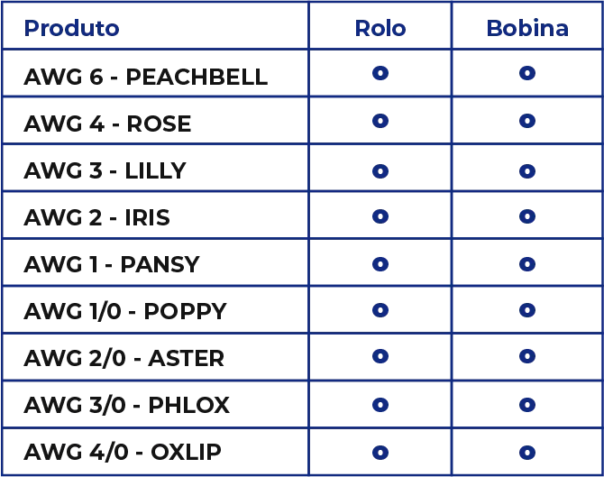 Fios de alumínio 1350, com têmpera H19 e encordoamento classe 2.