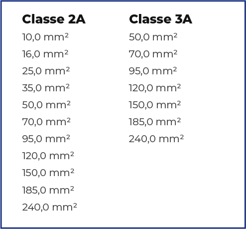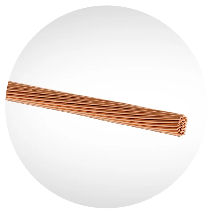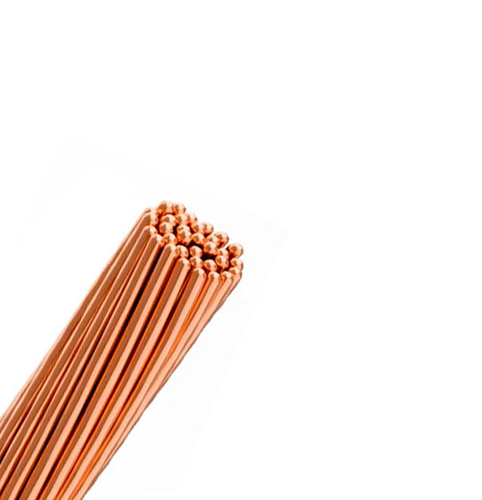 fios de cobre nu, eletrolítico, têmpera meio dura, sólido, encordoamento classe 2A e 3A.