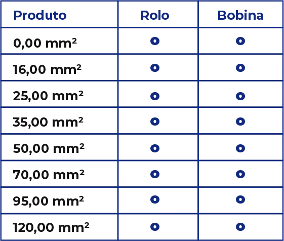 Fios de alumínio 1350, com têmpera H19 e encordoamento classe 2 compacta.